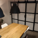 Rob stworzył drzwi przesuwne do separacji pomieszczeń, które łączą w sobie industrialny styl i funkcjonalność. W tym celu zbudował solidną drewnianą ramę, w której zamocował opalizujące białe płyty poliwęglanowe. “Jestem bardzo zadowolony z moich przesuwnych drzwi do separacji pomieszczeń!” mówi Rob z entuzjazmem.