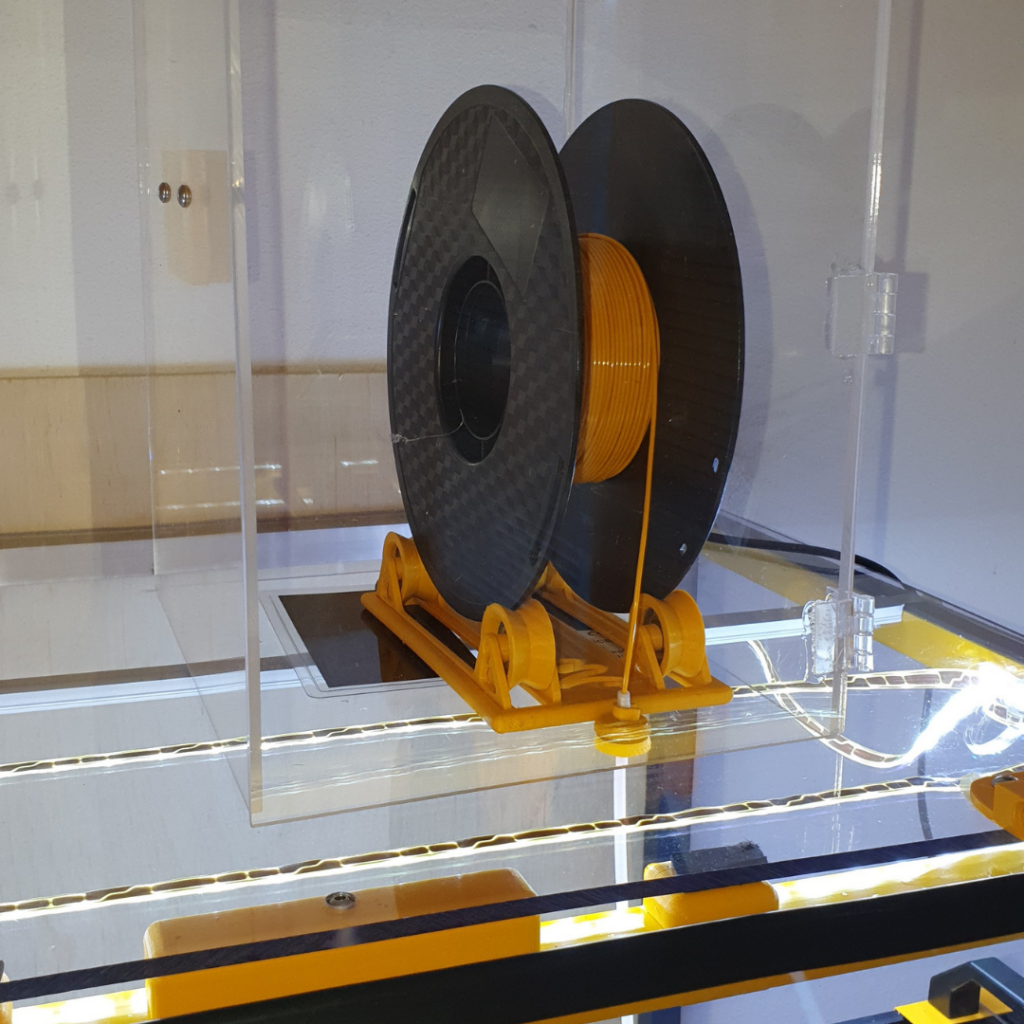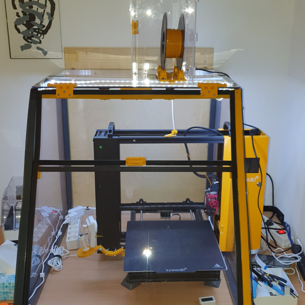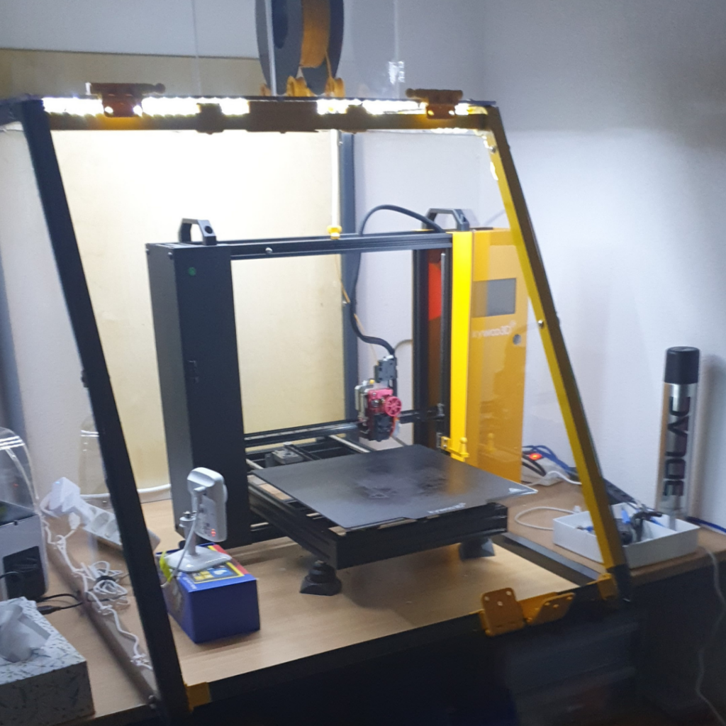 Jan chciał stworzyć optymalne warunki dla swojej drukarki 3D, dlatego zdecydował się na obudowę wykonaną z kwadratowych rur aluminiowych i plexi.Przezroczysta obudowa pozwala obserwować drukarkę w pełnej akcji, a jednocześnie utrzymuje odpowiednią temperaturę.Jan mówi: “Chciałem mieć piękną obudowę dla mojej drukarki 3D, aby temperatura wokół niej była optymalna i zapewniała najlepsze rezultaty.”