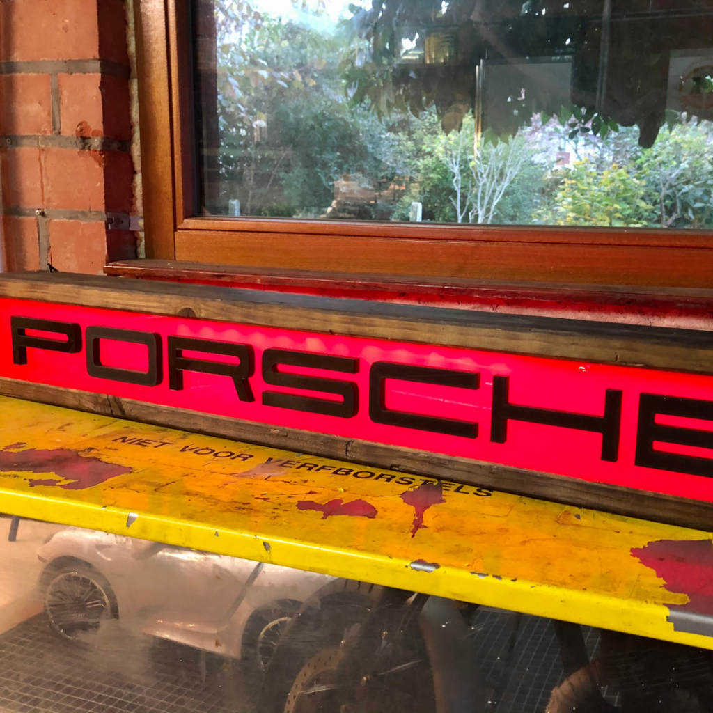 Z plexi w kolorze czerwonego opalu Kevin stworzył wyjątkową tablicę świetlną z widocznym na niej logo Porsche. Realizacja tego projektu była świetną zabawą, a rezultat końcowy jest niesamowity! Tę tablicę Kevin może wykorzystać jako dekorację!