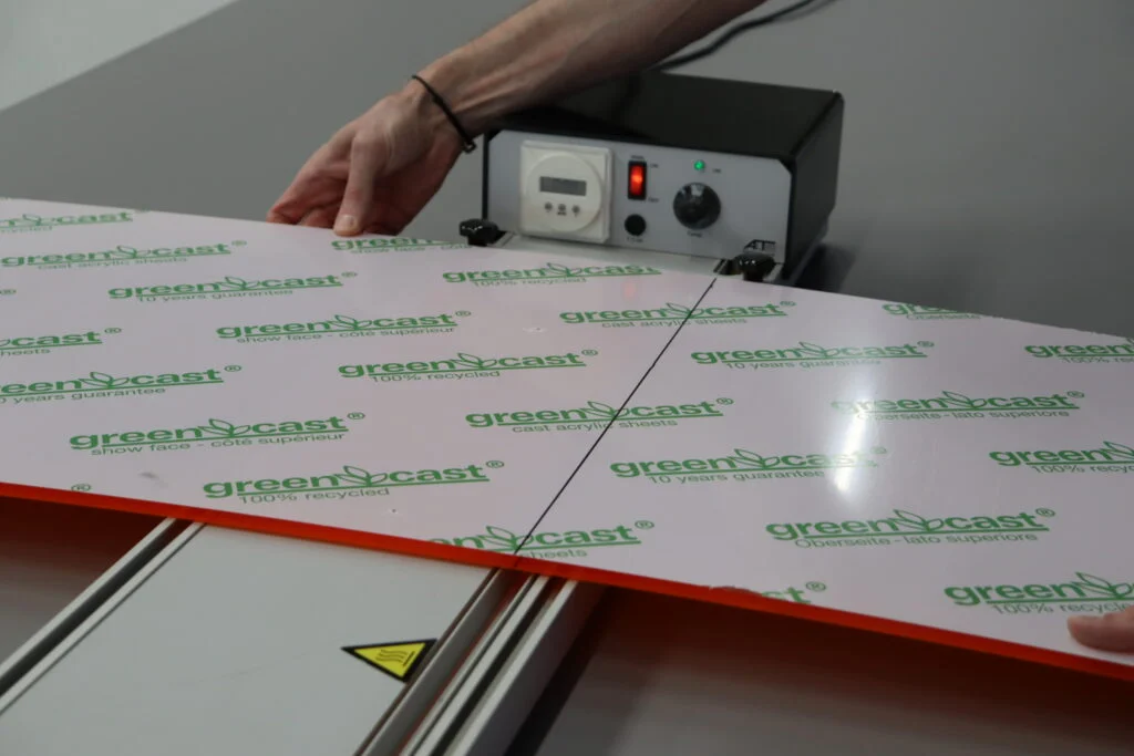 Do gięcia płyty plexi użyj giętarki lub opalarki. Linię gięcia podgrzewaj równomiernie z obu stron, aby uniknąć powstania pęknięć lub nierówności. Gdy plexi będzie wystarczająco elastyczne, ostrożnie zegnij je pod odpowiednim kątem.