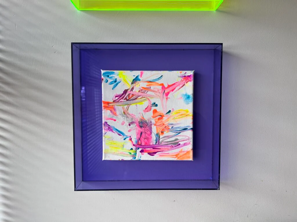 Gdy rama jest już solidnie sklejona, możesz bezpiecznie i precyzyjnie zamocować w niej swoje dzieło sztuki. Użyj dwustronnej taśmy klejącej – jest to łatwa, a jednocześnie skuteczna metoda, aby dzieło sztuki na trwałe umocować w ramie.