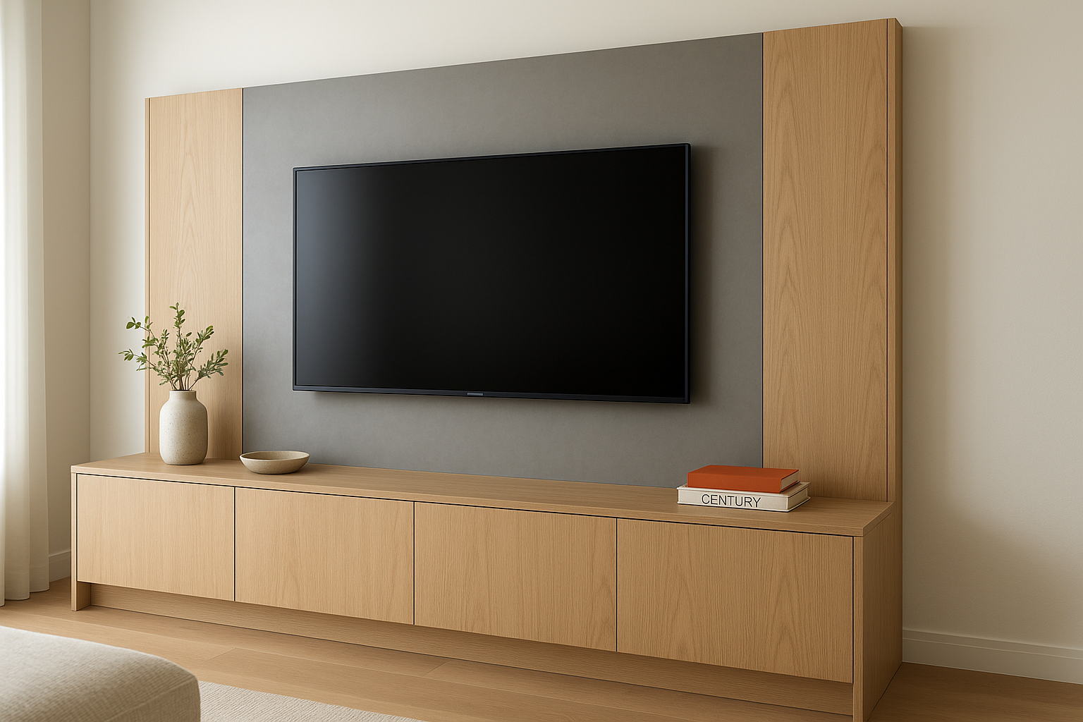 Ściana telewizyjna to specjalnie zaprojektowany panel, który umożliwia estetyczne wkomponowanie telewizora i akcesoriów w wystrój salonu lub innego pomieszczenia. To praktyczny i stylowy sposób na ukrycie kabli, z jednoczesnym zachowaniem nowoczesnego wyglądu wnętrza. Dzięki różnorodnym stylom wykończenia ściana telewizyjna pasuje do każdego typu wnętrza – niezależnie od tego, czy jest ono nowoczesne, industrialne czy klasyczne. Sztuczne tworzywa świetnie się tutaj sprawdzają: są lekkie, trwałe i mają bardzo wszechstronne zastosowanie, jeśli chodzi o dostosowanie ich do indywidualnych potrzeb.